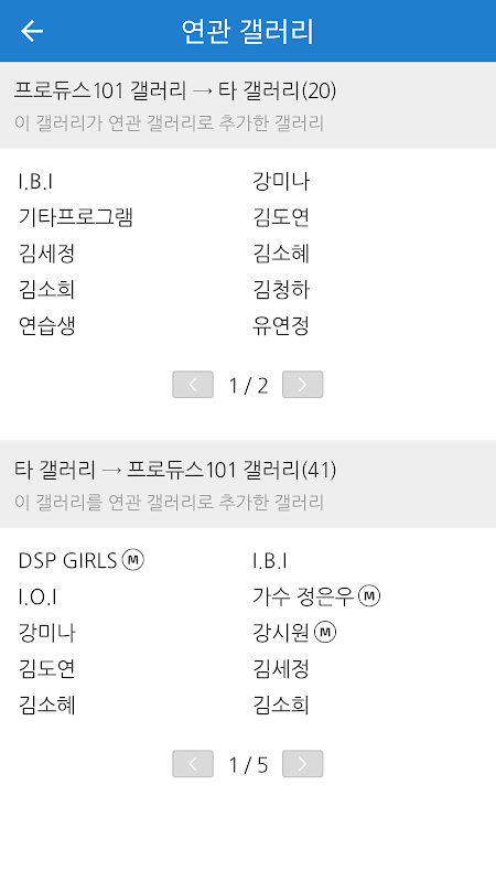 2. 연관 디시콘 : 프로듀스101 갤러리와 관련있는 디시콘을 갤러리 정보 화면에서 확인할 수 있습니다.