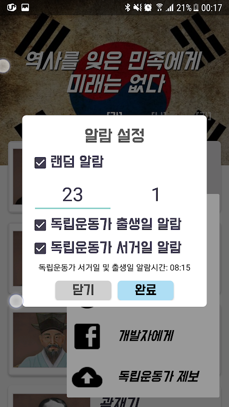 알람을 설정하고 하루에 한 분씩 독립운동가 선생님들에 대해 배워봅시다.