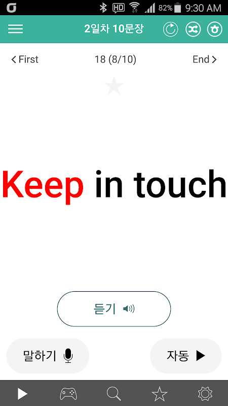 - 어느정도 눈과 귀와 입에 익히면 게임을 순서 (뜻 > 문장) 대로 해본다.