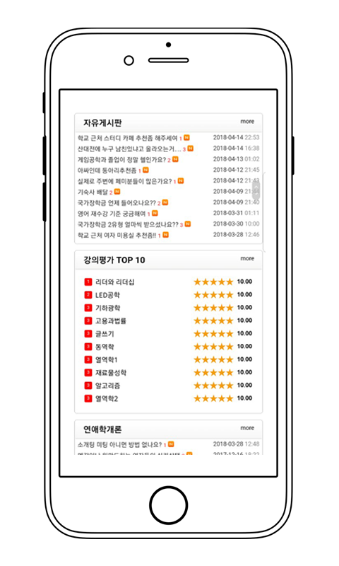 강의평가방, 강의교환방, 벼룩시장 제공을 통한 편의성 제공
