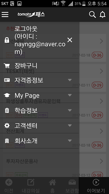 - 내 강의실: 결제한 강의를 스트리밍과 다운로드 방식으로 선택해서 수강이 가능.