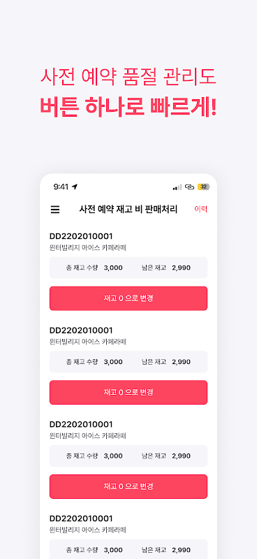 배달/픽업/사전예약 상품의 판매여부를 실시간으로 관리할 수 있습니다.