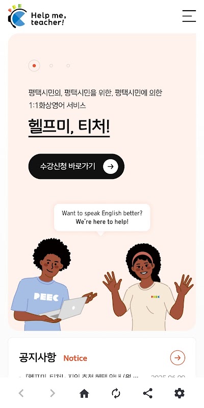 평택시민을 위한 화상영어 프로그램, 헬프미, 티처!