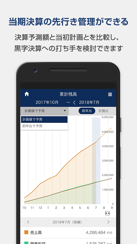 決算予測額と当初計画とを比較し、黒字決算への打ち手を検討できます。