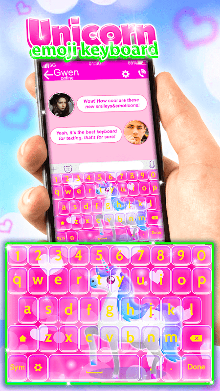 These “magical unicorns” will make your keyboard look fabulous! Once you turn your standard keyboard into the sweetest “rainbow unicorn themes”, you will instantly fall in love with our designs, customized fonts and emoticons. If you want to make your phone cutest among your friends, just grab this sweet keyboard skin and enjoy funny typing! Download 🦄 Unicorn Emoji Keyboard 🦄 , change keyboard background and feel the surge of excitement using this “pink fluffy unicorn” app!
