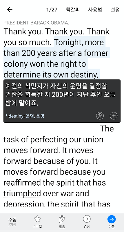- 1단계 직듣따 : 직역 읽고 발음 듣고 따라해서 직역과 발음 "배우기"