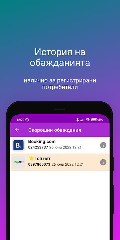 Скорошни повиквания - регистрирани потребители могат да видят история на позвъняванията