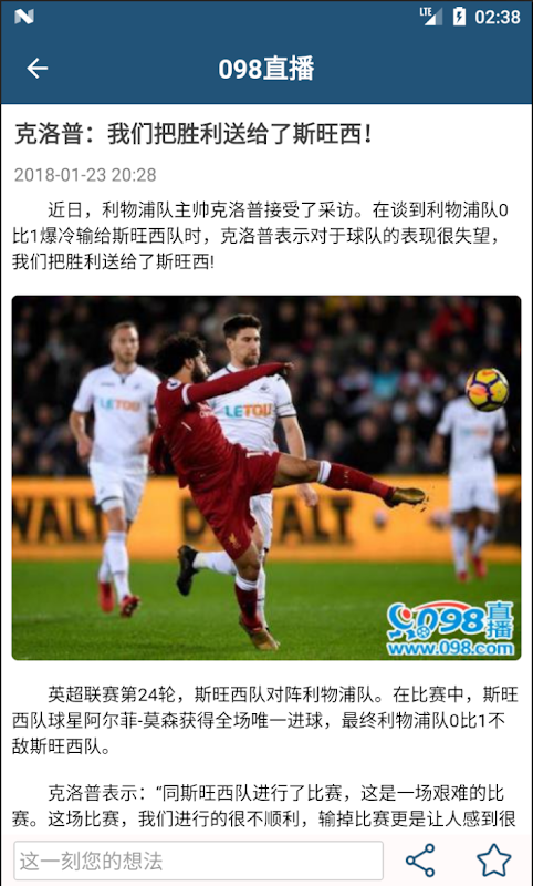 098直播客户端是知名体育网站098.com的官方手机客户端,提供篮球、足球等体育赛事的直播预告、新闻、数据、社区论坛等。