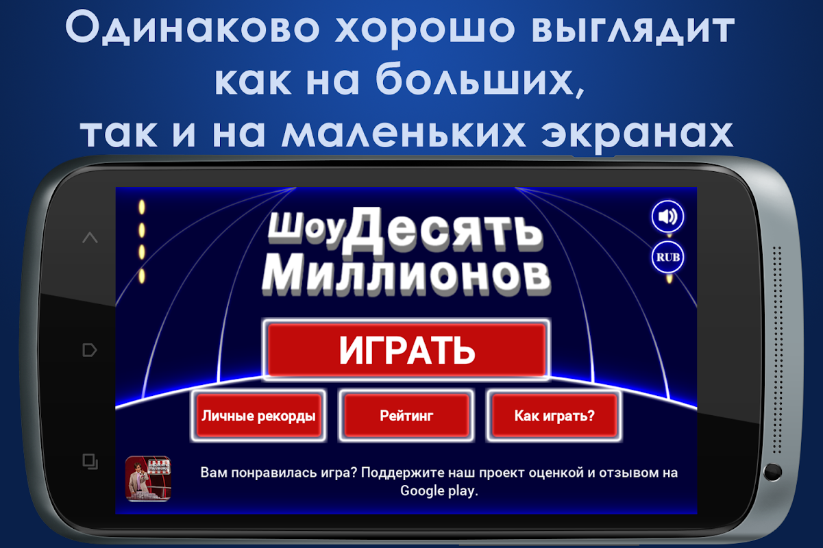 "10 Миллионов" - одна из самых популярных викторин! Вам предстоит отвечать на вопросы и делать ставки на правильные ответы. В вашем распоряжении есть 10 миллионов рублей (40 миллионов тенге, 2 миллиона гривен или 100 миллионов белорусских рублей ), которые нужно сохранить до конца игры. 40 пачек денег можно поставить как на один ответ, так и разделить на несколько.