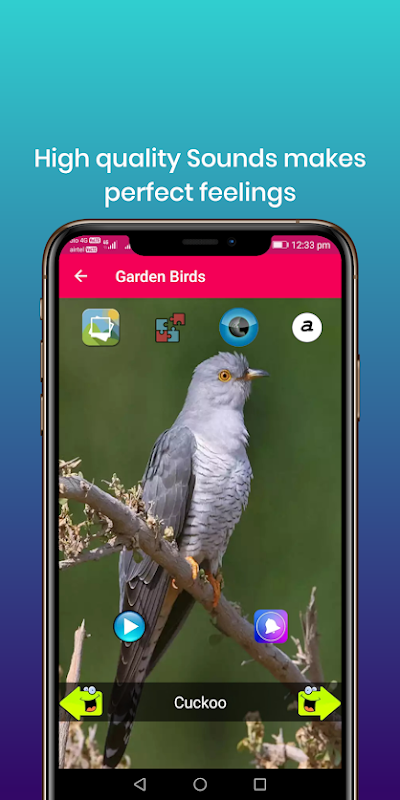 새 소리는 모든 사용자를위한 엔터테인먼트 응용 프로그램으로 조용하고 차분한 느낌을 받고 즐겁게 해줍니다. 이 새 소리 앱에는 다양한 새 소리가 100 개 이상 포함되어 있습니다. 이 새 소리로 사용자는 쉬운 탐색으로 쉽게 즐길 수 있습니다. HD 새 사진을 제공하고 이미지에 대한 간단한 터치로 각각 새의 소리를 생성합니다.