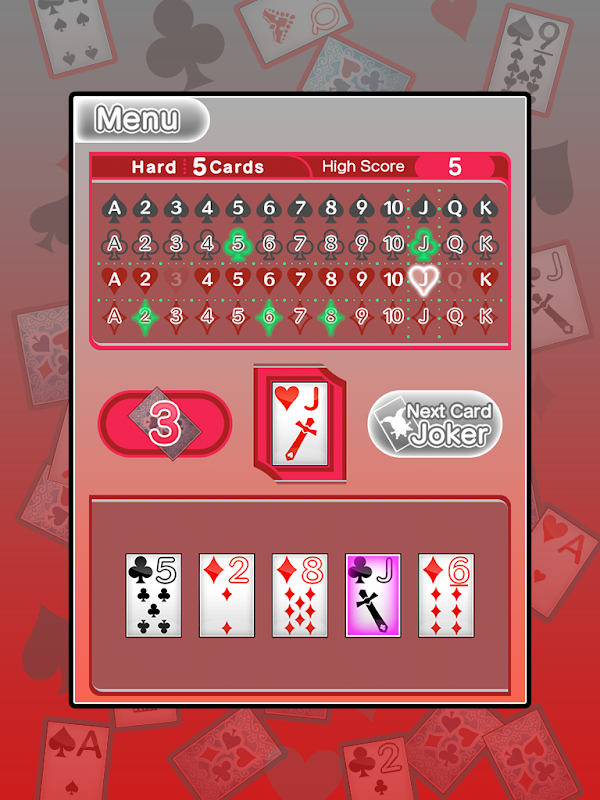 "104Cards"연속 "같은 번호"또는 "같은 마크"되도록되어, 52 카드 놀이를 넣어 게임이다.