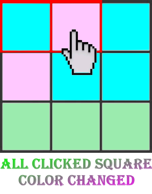 剛點擊以及曾點擊的方格皆會轉色。