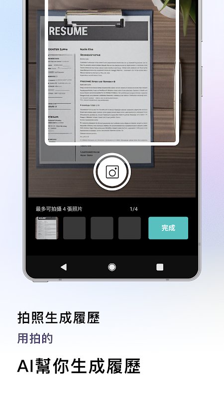 휴대폰을 사용하여 경험을 기록하면 AI가 전문적인 이력서 작성을 도와드립니다.