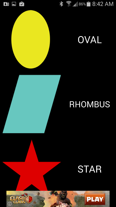 이 응용 프로그램에 포함 된 형상 / 양식은 다음과 같습니다 : 원, 삼각형, 사각형, 오각형, 육각형, 팔각형, 사각형, 마름모, 초승달, 간, 심장, 타원형, 스타를. 각각의 형태는 그 이름과 함께 표시됩니다. 그 이름을 듣고 그것을 회전 볼 수있는 모양을 누릅니다.