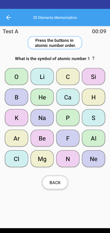 이 응용 프로그램은 원자 번호 1 수소(H)에서 원자 번호 20 칼슘(Ca)까지 화학 원소 기호 암기를 지원합니다.