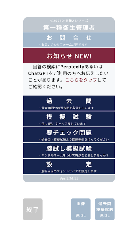 APKPure는 바이러스 없는 第一種衛生管理者<2026>対策Aシリーズ APK 다운로드를 위해 서명 확인을 사용합니다.