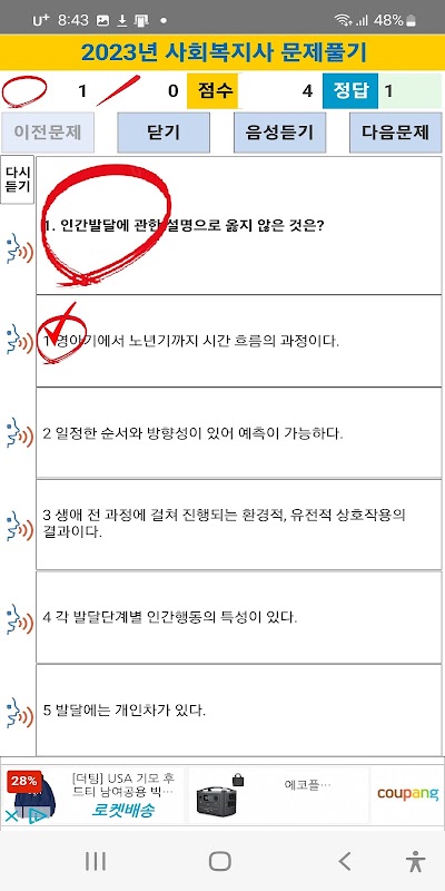 음성 문제 읽기로 더 편리하게 공부하고, 틀린 문제 도장깨기로 완벽 대비하세요!