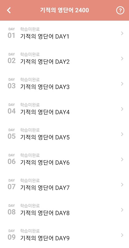 2,400개를 학습할 수 있도록 일자별로 어휘를 제공합니다.