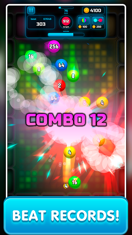 ☝️ 같은 숫자 값을 가진 공을 연결하고 2 개의 숫자가 더있는 공 하나를 얻으십시오.