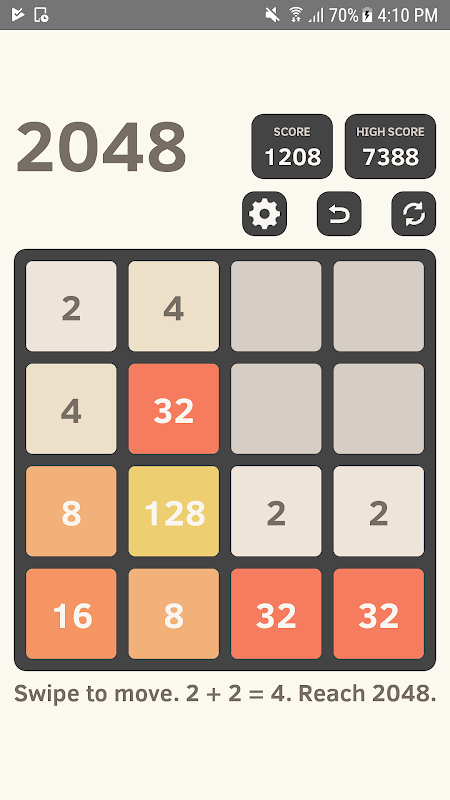 2048 테마 설정으로 4X4, 5X5, 6X6 보드 크기의 엔드리스 모드.