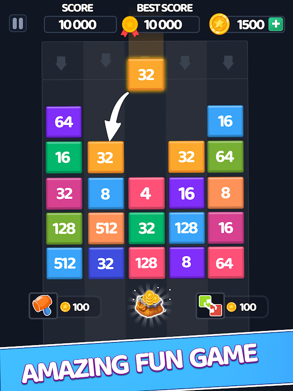 ☑️ 같은 숫자 블록 두 개를 합쳐 x2를 만드세요.