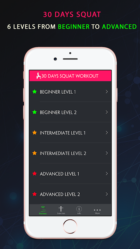 이 응용 프로그램에는 15 가지 핵심 운동 변형으로 6 개의 강렬한 운동이 있습니다!