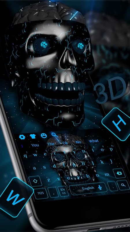 To enjoy the best effects of 3D Blue Neon Tech Robot Skull Keyboard Theme, you need to download our keyboard app