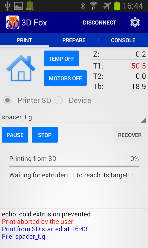 인쇄 G-코드는 와이파이, 블루투스 또는 USB OTG / 호스트 포트를 통해 안드로이드 장치에서 직접 파일.