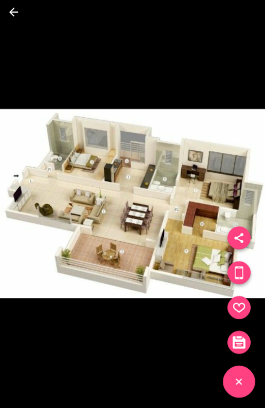 3D House Design은 인테리어 디자인과 인테리어 디자인을 계획하는 데 도움이되는 무료 안드로이드 앱입니다. 2 개의 침실 디자인 및 3 개의 침실 디자인은 다른 탭에서 따로 따로 선물됩니다