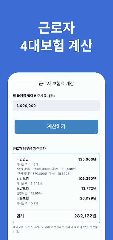4대보험계산기 - 근로자, 사업자용 사대보험 계산기 apk 정보