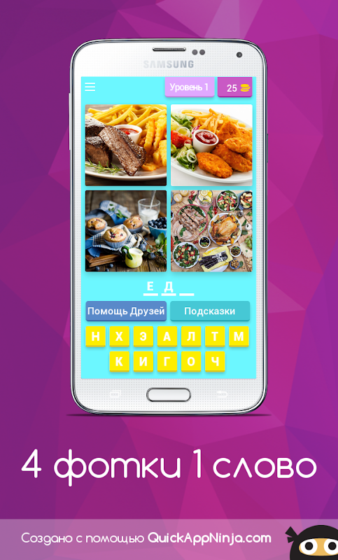 Как только начинается игра, Вы увидите на экране своего смартфона (планшета) 4 картинки и буквы. Ваша задача найти общее между фото - это и будет загаданное нами слово. Наберите его, используя буквы внизу экрана
