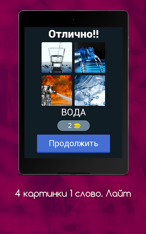 라이트 버전에서 레벨은 어린이와 샤워에서 어린이처럼 느끼는 사람들에게 적합합니다. 또한, 게임은 "단어 퍼즐 추측"과 "그림에 무엇이 있는지 추측"이라고 할 수 있습니다.