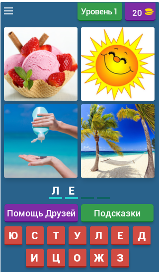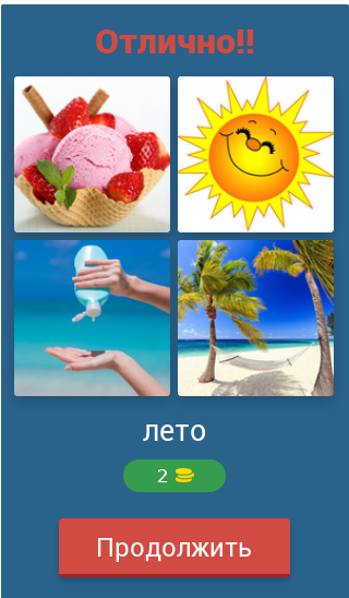 Интересная и увлекательная игра в которой вам предстоит отгадывать слова с помощью 4 фото.
