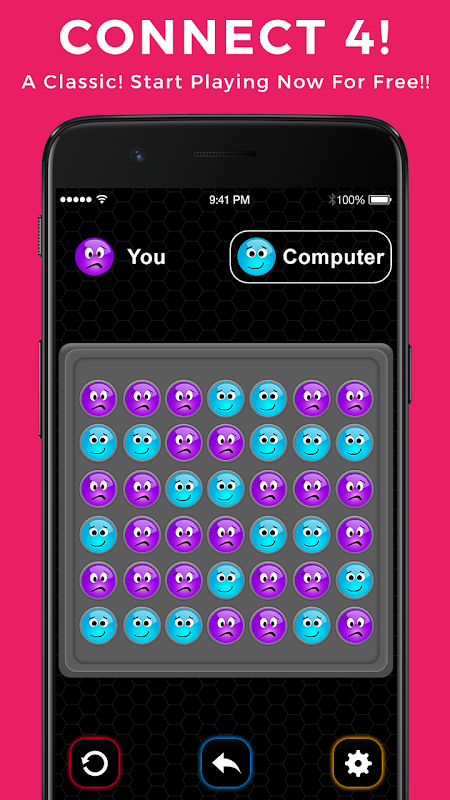 "4 in a Row" is a game classic for two players. Goal of the game is to line up four discs of your color to a horizontal, vertical or diagonal line. Alternating, you and your opponent drop discs into the grid and try to complete a line of four discs against the computer, friends or strangers from all over the world!