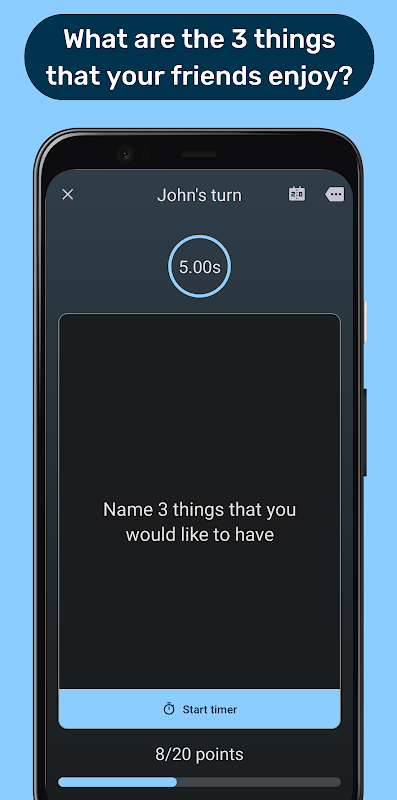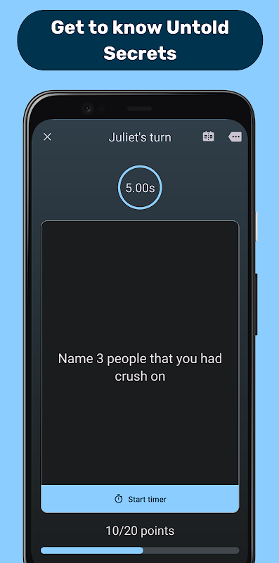 5초 규칙의 가장 좋은 점 중 하나는 사용자 지정 가능한 시간 제한 기능입니다. 5초 시간 제한이 있는 빠른 게임을 원하든 다른 시간 제한에 도전하든 원하는 방식으로 플레이할 수 있는 유연성이 제공됩니다. 재미있고 매력적인 질문이 있어 이 게임을 절대 지루하지 않을 것입니다.