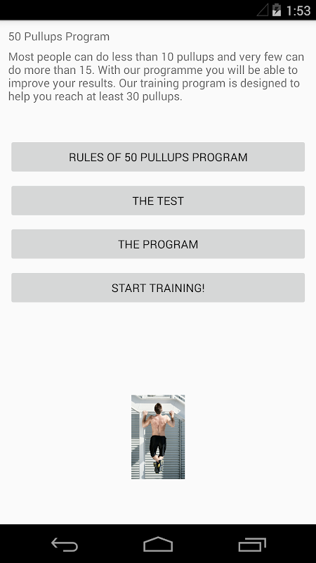 50 개 풀업 프로그램은 당신이 당신의 strenght과 체격을 개발하는 데 도움이됩니다 교육 프로그램입니다.