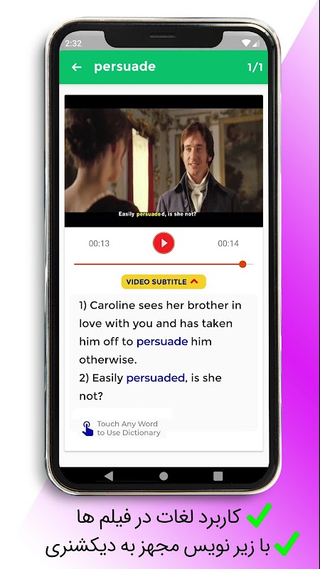 각 단어의 의미는 관련 그림과 함께 제시되고, 적어도 두 개의 비디오는 실제 단어 대화에서 단어가 어떻게 사용되는지 진정으로 보여줍니다.