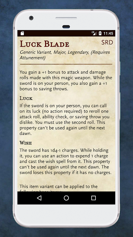 응용 프로그램에서 제공하는 모든 정보는 5.1 버전의 SRD (System Reference Document)에서 찾을 수 있으며 WOTC (Wizards of Coast)의 1.0a 버전의 OGL (Open Gaming License) 약관에 구속됩니다.