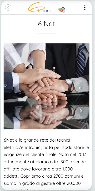 6Connect : 그것은에서 오는 간단하고 직관적 인의 지원, 도움말, 설문 조사, 평가, 구성 및 유지 관리를 얻기 위해 기술자의 설치 우리의 네트워크와 최종 사용자의 접촉을 넣을 수있는 혁신적인 응용 프로그램 ... 6NET 아이디어, 전자 부문에서 운영 이탈리아에서 인증 설치의 첫 번째 네트워크.