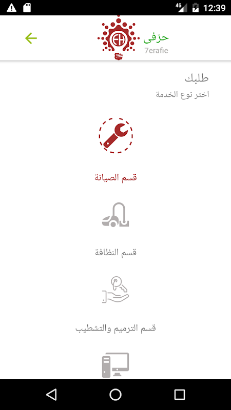 -- يمكنك بعد ذلك تحديد وتوصيف الخدمة التى ترغب بها بكل سهوله حيث يتميز التطبيق بسلاسه وسهوله استخدام