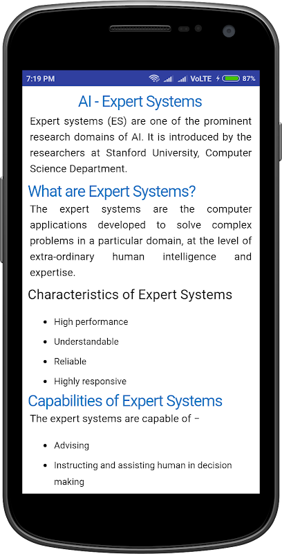 A I Tutorial app collections of Categories are below and provide all this Topic