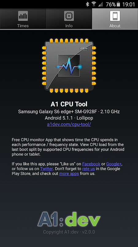 • Problem with A1 CPU Tool? Send us your feedback using Send Feedback feature from the Settings screen, or http://a1dev.com/feedback/