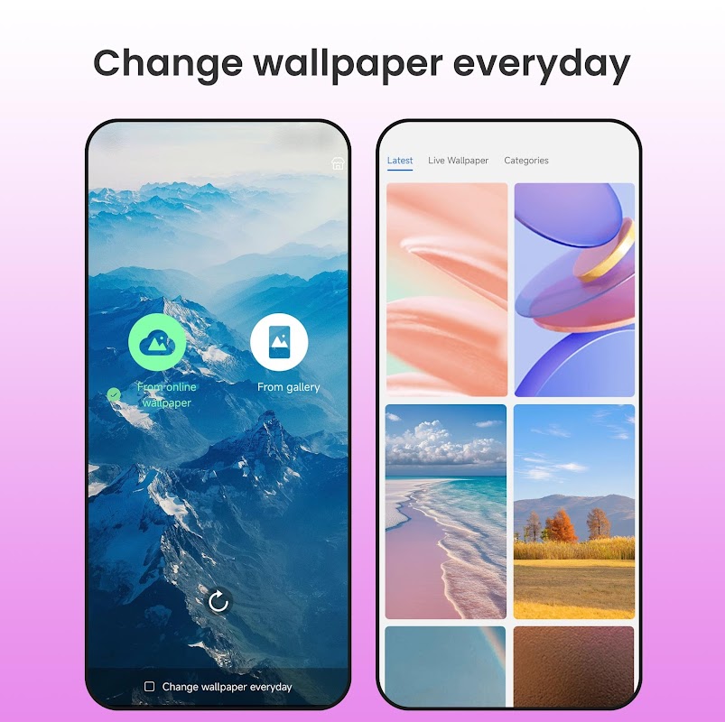 + 다양한 아름다운 온라인 배경화면을 제공하며, Like Launcher에서 매일 자동으로 배경화면을 변경할 수도 있습니다.