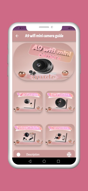 A9 wifi 미니 카메라 가이드 앱의 콘텐츠에는 어떤 정보가 있습니까?