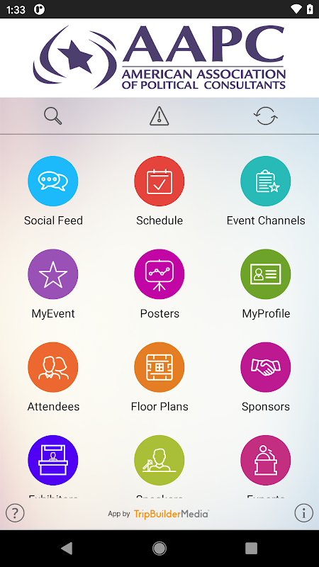 이 TripBuilder Multi Event Mobile™ 앱은 미국 정치 컨설턴트 협회(AAPC)에서 무료로 제공합니다. TripBuilder Media Inc.에서 설계하고 개발했습니다. 이 앱 사용 방법에 대해 질문이 있거나 지원이 필요한 경우 지원 티켓(앱의 도움말 아이콘 내에 있음)을 제출하십시오.