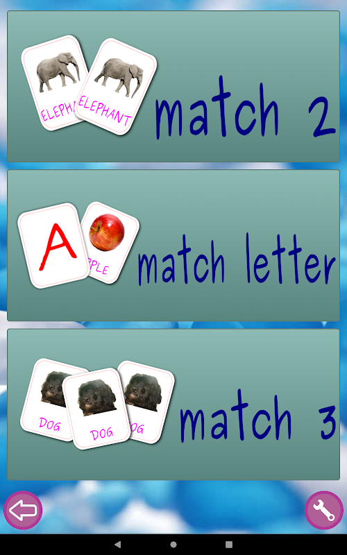 * abcMemory has cards with letters and cute animals and objects with its name, so while playing we are still learning.