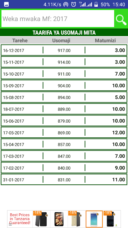 1. Usomaji wa mita yake na kiasi cha maji alichotumia