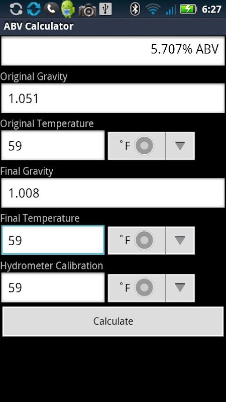 홈 맥주 양조 와인 메이커에 대한 간단한 ABV 계산기.
