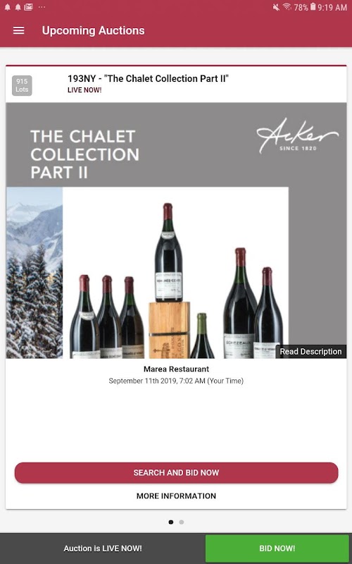 새로운 액커 메랄 & CONDIT 모바일 앱은 전 세계 애호가, 수집가와 싹 트는 와인 애호가에 의해 희귀하고 가장 높은 수요가 와인의 폭 넓은 선택에 대한 액세스를 제공합니다.