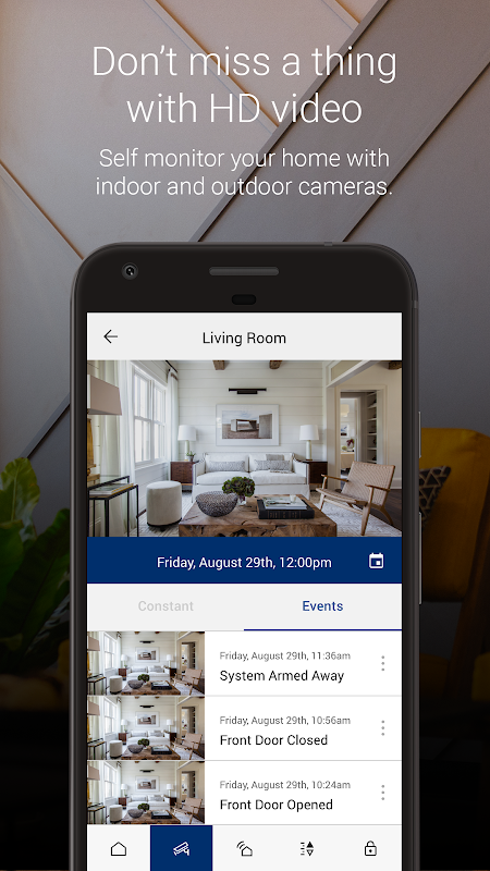 실시간 경보 상태를 수신하고 원격으로 보안 시스템을 가동 또는 해제 할 수 있습니다. 보안 경보 발생시 즉각적인 알림을 받거나 가족이 집에 도착했을 때 알림을 받기 만하면됩니다.